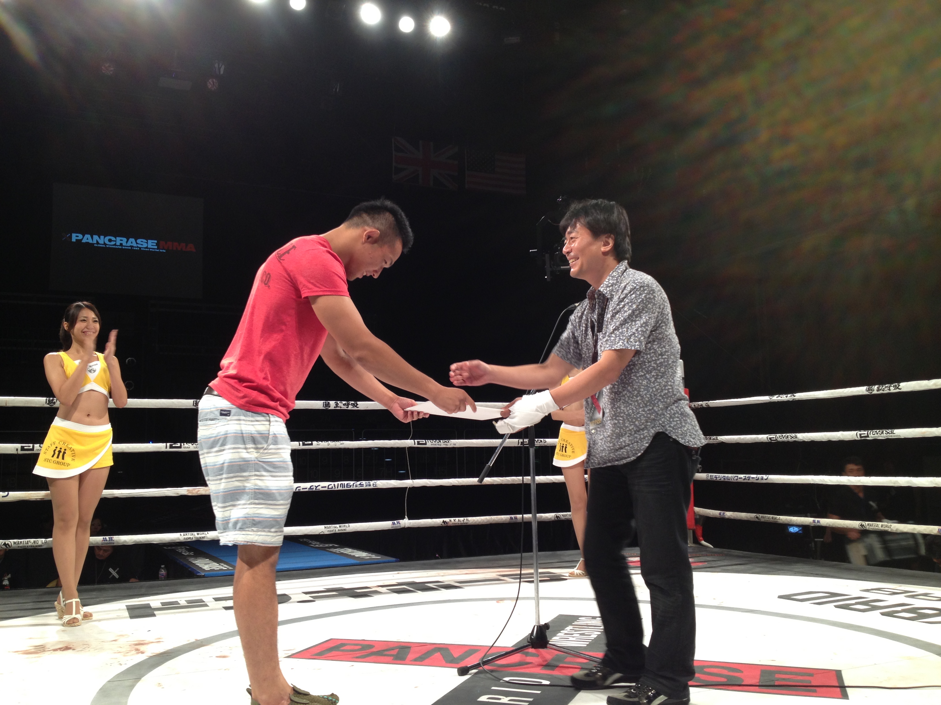 KOされる位なら、ギブアップする位なら死んだ方がましだという2人の魂が呼応する凄まじい展開は、紙一重の差で勝利の女神はチャンピオンISAOに微笑んだ。